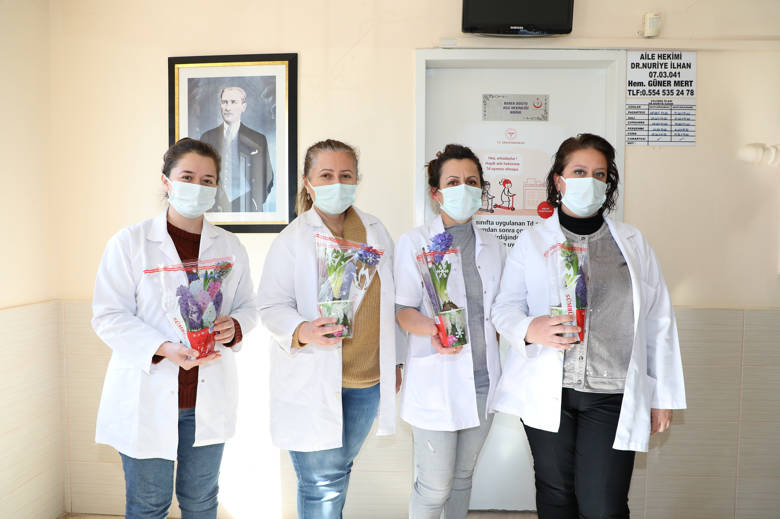 Büyükşehir Belediyesi, korona virüs salgını ile mücadele döneminde gece gündüz demeden özverili şekilde çalışan sağlık çalışanlarını unutmadı. 14 Mart Tıp Bayramı nedeniyle Antalya kent merkezi ve ilçelerdeki sağlık çalışanlarına Başkan Muhittin Böcek’in talimatıyla çiçek dağıtıldı. Büyükşehir Belediyesi Park ve Bahçeler Dairesi Başkanlığı’na ait seralarda yetişen sümbül ve ateş çiçekleri sağlık çalışanlarına hediye edildi.