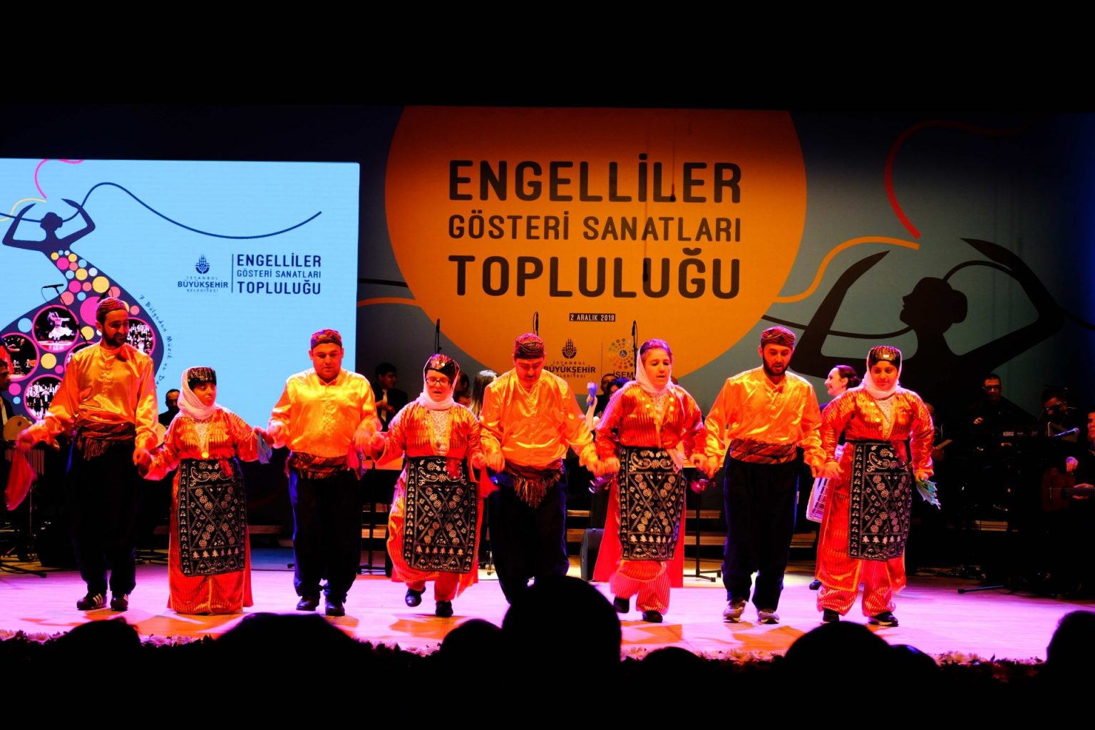 İBB Engelliler Müdürlüğü rehberliğinde büyük bir özveri ve disiplinle ritim, ses, bale, halk oyunları dersleri alan engelliler, eğitimlerini nefesleri kesen gösteriyle taçlandırdı. “7 Bölgeden Müzik ve Dans” temalı bir konser ve sahne gösterisinde; Balkan müziklerinden Karadeniz’e, Ege’den Doğu Anadolu’ya, Akdeniz’den İç Anadolu’ya değin her bölgenin her yörenin gönüllere mühür olmuş şarkılar, türküler, yetenekli engelli bireylerin güçlü sesleri ve yorumlarıyla beğenilere sunuldu.
