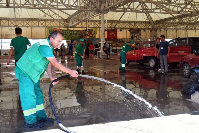 Temizlik İşleri Müdürlüğü ekipleri kesim alanlarında çöp konteynırları ve su tankerleri hazır olarak bekletti. Kurban kesimi sonrasında atıklar, çöp konteynırlarına taşınarak çevre kirliliğinin önüne geçildi. Temizlik ekipleri anında müdahale ederek kurban kesilen yerleri tazyikli suyla hemen yıkadı.