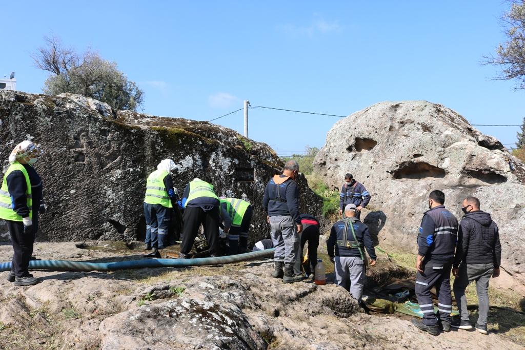 Gökçebel Mahallesi’nde bulunan Roma Dönemi’ne ait Kaya Mezarları ve Sunu Çukurları’nın yer aldığı park alanı ile Türkbükü Mahallesi’nde bulunan Roma Dönemi ait Kaya Mezarların yer aldığı alanda Bodrum Belediyesi İmar ve Şehircilik Müdürlüğü Koruma Uygulama ve Denetim Bürosu (KUDEB)’nun, tarihsel mirası ortaya çıkarmak için hazırladığı projeler kapsamında, temizlik çalışmaları başlatıldı.