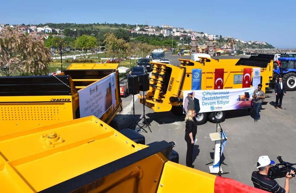 Konuşmaların ardından Süleymanpaşa, Malkara, Hayrabolu, Şarköy, Çerkezköy, Saray ve Muratlı ilçelerinin Ziraat Odaları Başkanlıklarına, 7 adet katı gübre dağıtım römorkunun teslimi gerçekleştirildi.