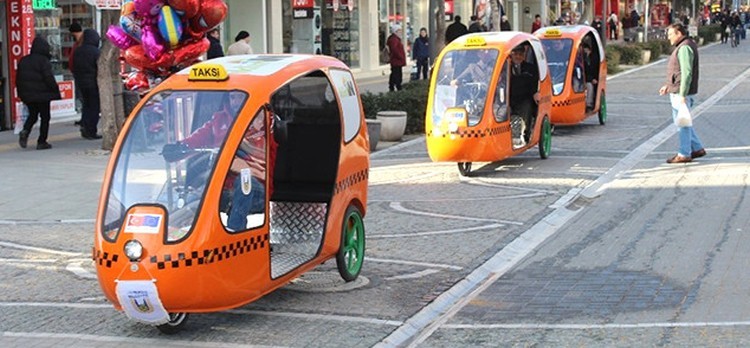 Lüleburgaz İlçesi’nde karbon salınımını azaltmak için alınan 3 adet elektrikli bisiklet taksi hizmete başladı.Elektrikli bisiklet taksiler, AB tarafından finanse edilen “Bisikletlerimizle İklim Değişikliğine Karşı Mücadele Ediyoruz” projesi kapsamında belirli güzergahlarda ulaşım sağlayacak. Elektrikli bisiklet taksiler, öncelikli olarak 60 yaş ve üzeri, engelli, hamile ve çocuklu vatandaşlara hizmet verecek.