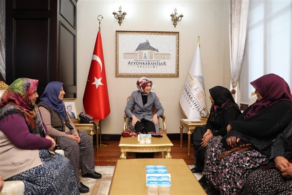 AFYONKARAHİSAR – 22.11.2022 – HİBYA -Kadınların köylerden getirdiği yöresel hediyeleri kabul eden Vali Yiğitbaşı, misafirleri ile uzun uzun sohbet etti.